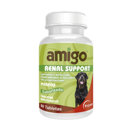 AMIGO® RENAL SUPPORT es un suplemento nutricional, renoprotector y renopreparador, en tabletas masticables saborizadas, específico para el correcto funcionamiento del sistema urinario.