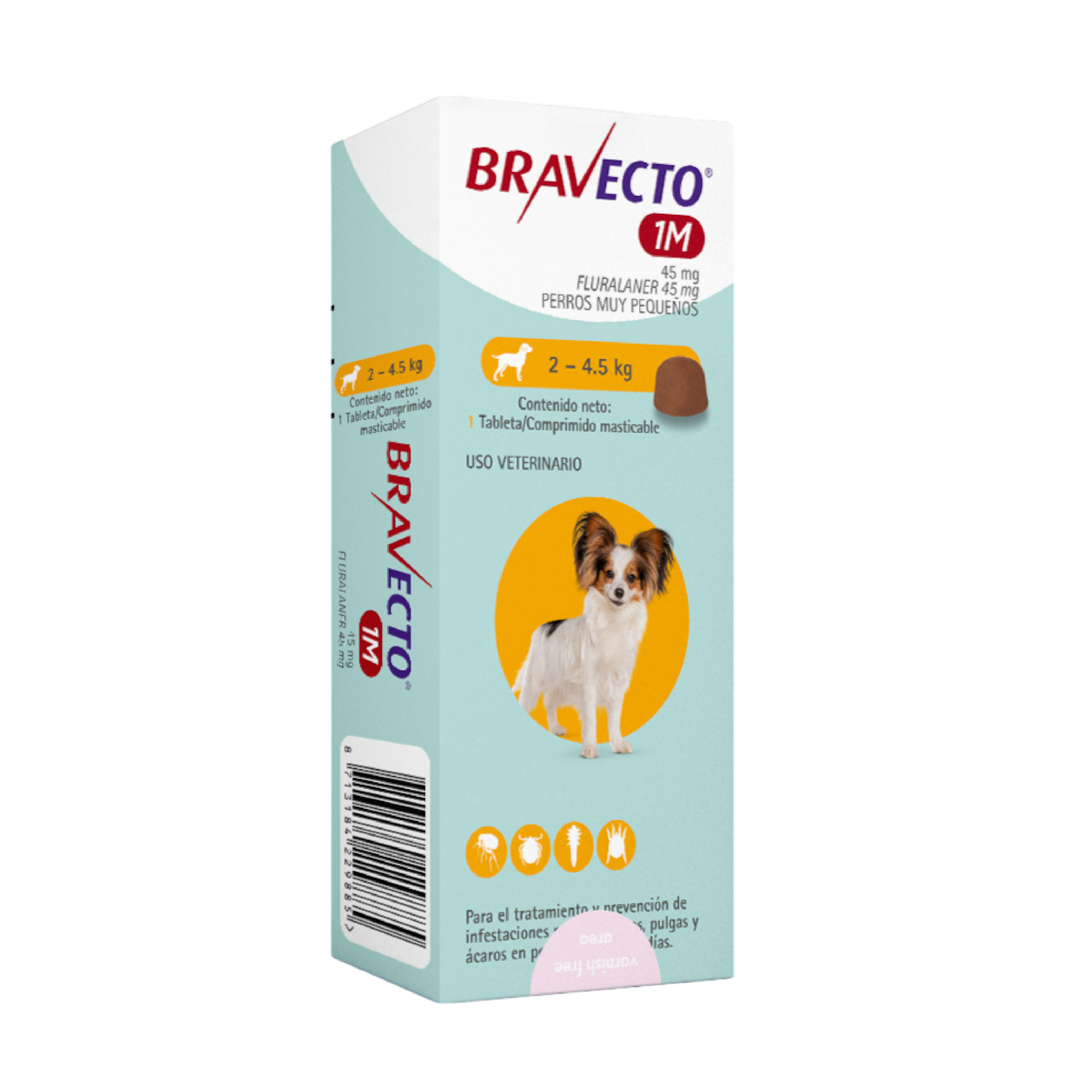 Bravecto 37 Días 2–4.5 kg – Tableta Masticable para Perros Miniatura con Eficacia Contra Pulgas y Garrapatas – MSD