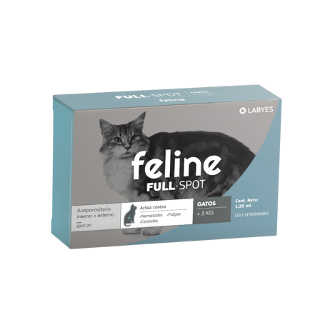 Descripción: Feline Fullspot es una solución antiparasitaria de uso externo, especialmente formulada para proteger a los gatos contra una variedad de parásitos, incluyendo pulgas, garrapatas, ácaros y algunos parásitos internos. Su fórmula avanzada proporciona una protección integral y duradera, eliminando eficazmente los parásitos existentes y previniendo futuras infestaciones. Feline Fullspot es fácil de aplicar y adecuado para gatos de todas las edades y tamaños.