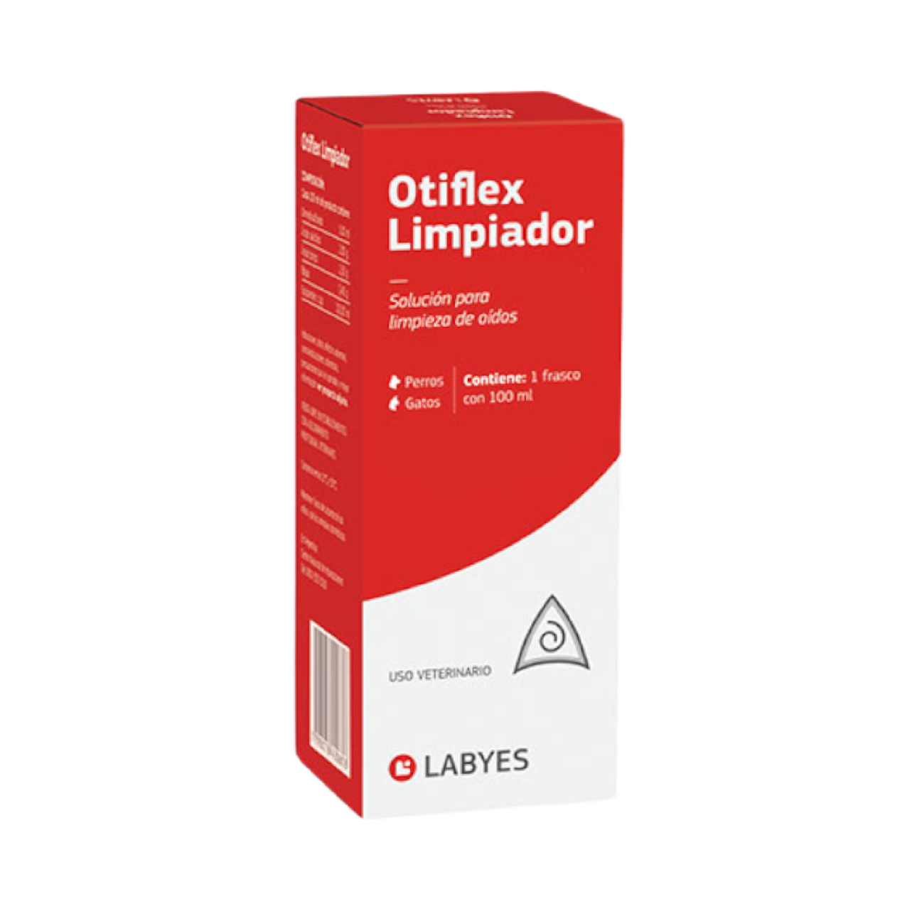 Otiflex Limpiador, solución para la limpieza de los oídos de perros y gatos. Por su poder detersivo y propiedades acidificantes, disuelve el cerumen y fluidifica los detritos.